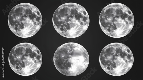 The watermark will not be included on Wall mural.: Set of moon isolated on transparent background - full moon night - illustration