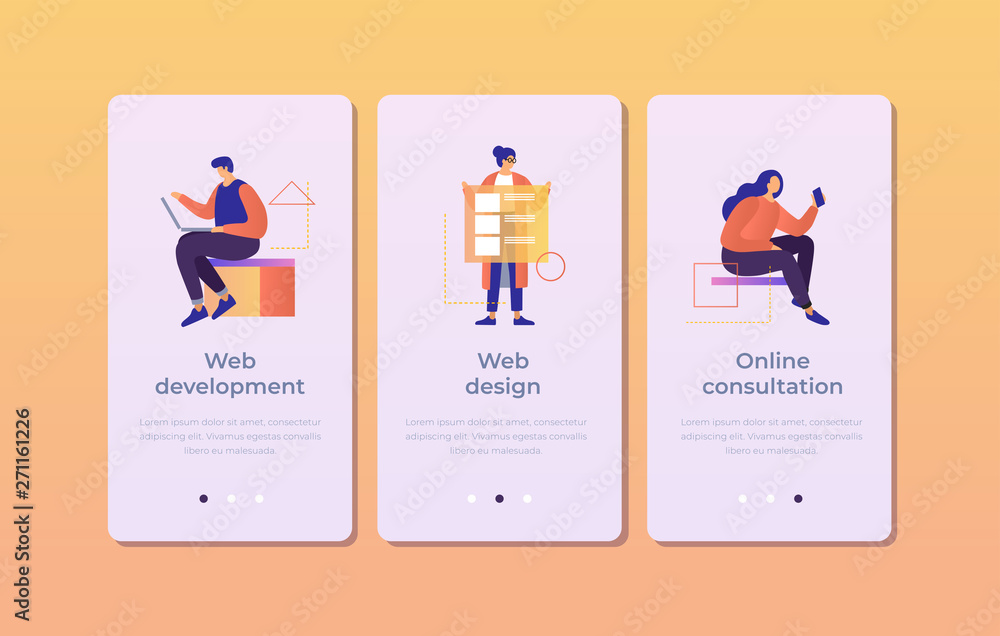 Wall mural set of onboarding screens for mobile apps. banners with people working in web development, design, o - Wall murals Wall mural set of onboarding screens for mobile apps. banners with people working in web development, design, o - Wall murals