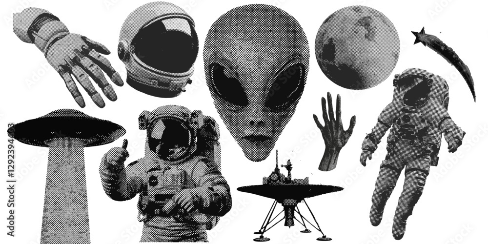 The watermark will not be included on Wall mural.: Set of outer space halftone grunge vector design elements