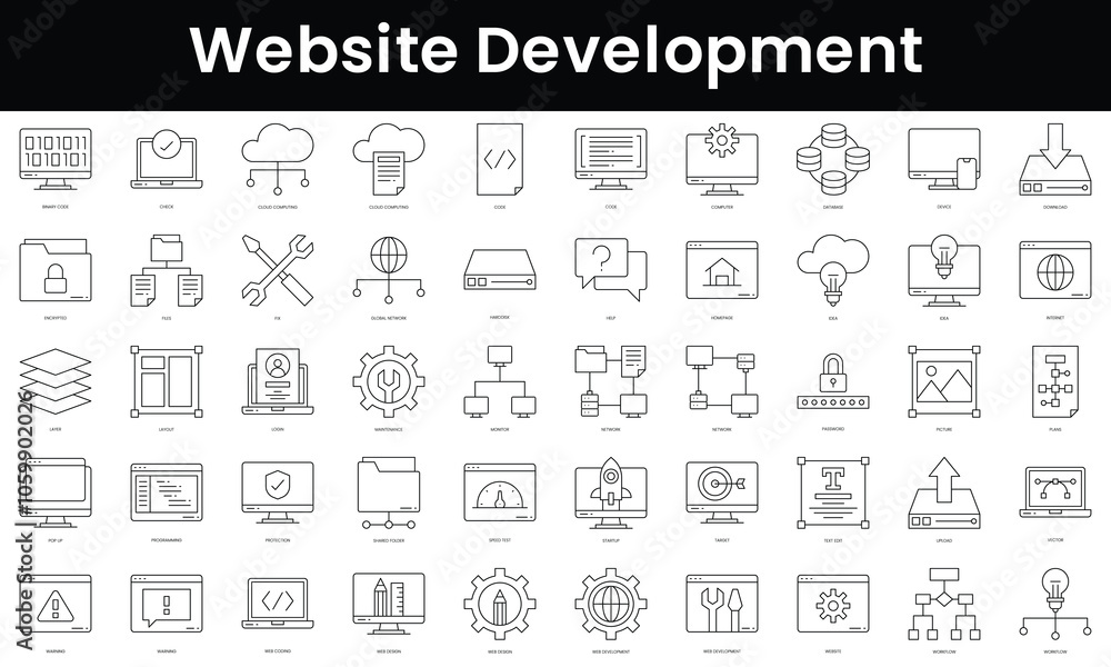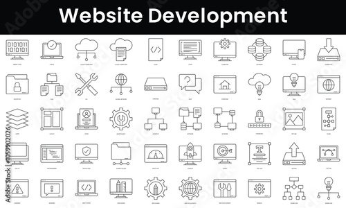 The watermark will not be included on Wall mural.: Set of outline website development icons - minimalist thin linear web icon set - vector illustration -