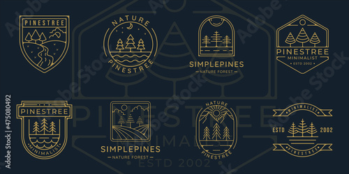 The watermark will not be included on Wall mural.: Set of pines tree logo line art simple vector illustration template icon graphic design - bundle coll