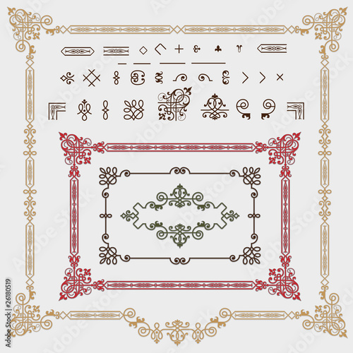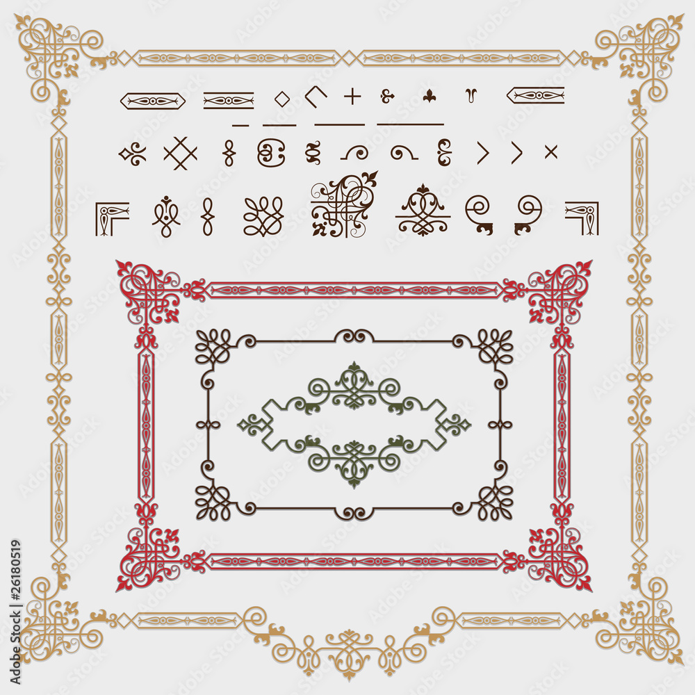 The watermark will not be included on Wall mural.: Set of plant elements for creating borders and frames
