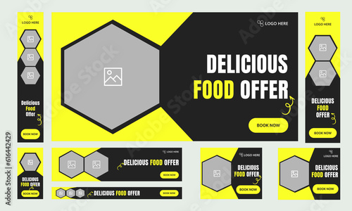 The watermark will not be included on Wall mural.: Set of polygonal shape food menu web banner template design for social media posts, geometric shape