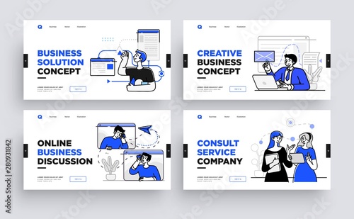 Wall mural : Set of presentation slide templates or landing page websites design - business concept illustrations -