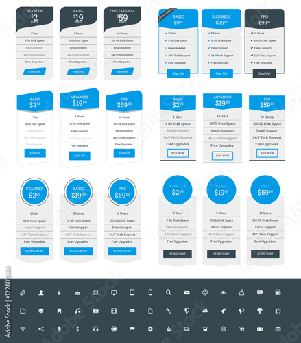 Wall mural : Set of pricing table design templates for websites and applications - vector pricing plans with icon