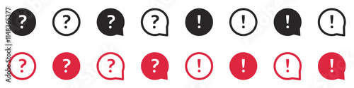 Wall mural set of question mark and exclamation mark icons. faq signs, help. help speech bubble sign, vector.