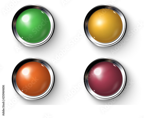 Wall mural : Set of realistic colored buttons with metallic borders -