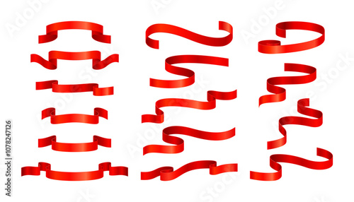 Wall mural set of realistic waved red silk ribbons isolated on a white background. design element for greeting  - Wall murals Wall mural set of realistic waved red silk ribbons isolated on a white background. design element for greeting - Wall murals