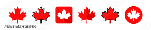 Wall mural : Set of red maple leaf vector icons - canadian symbol -