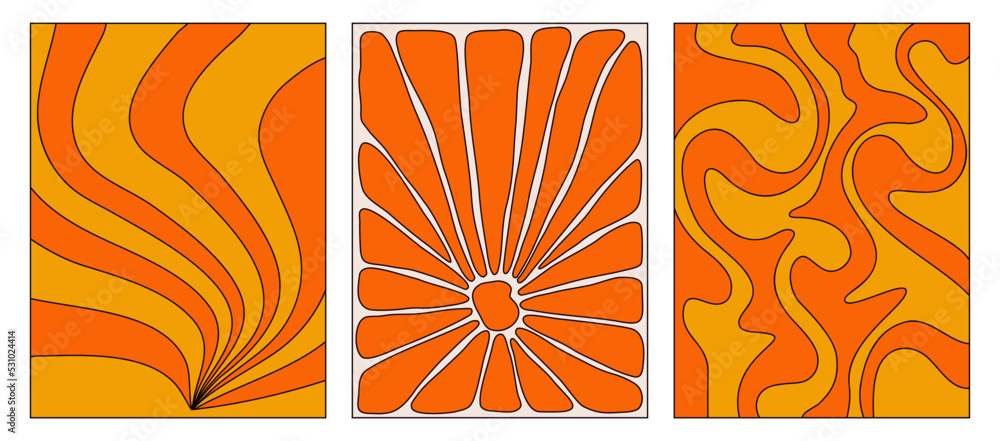 Wall mural set of retro backgrounds and posters. abstract colorful backgrounds with outline. the style of the 7