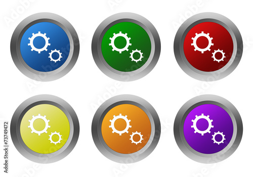 Wall mural : Set of rounded colorful buttons with gears symbol