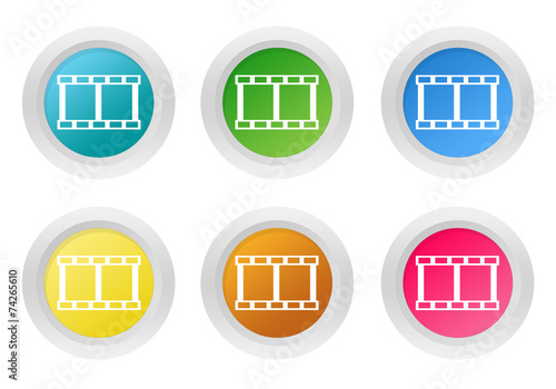 Wall mural : Set of rounded colorful buttons with movie symbol