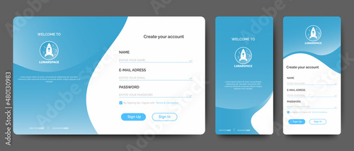 Wall mural : Set of sign up and sign in forms - blue-gray gradient - mobile registration and login forms page - prof