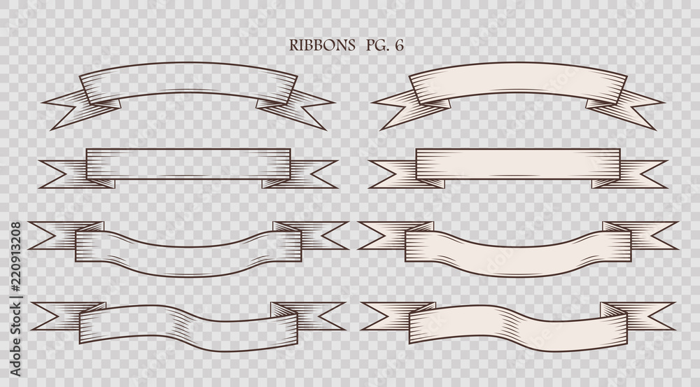 Wall mural : Set of simplified vintage hand drawn ribbons isolated on the sham transparent background - collection