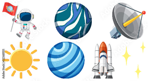 The watermark will not be included on Wall mural.: Set of space cartoon characters and objects