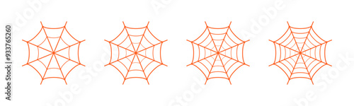 Wall mural set of spider web orange color on white background. spider web icon set in different shape. outline  - Wall murals Wall mural set of spider web orange color on white background. spider web icon set in different shape. outline - Wall murals