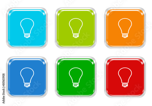 Wall mural : Set of squared colorful buttons with bulb symbol