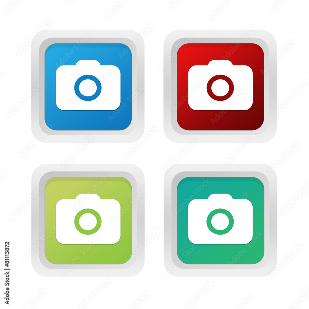 The watermark will not be included on Wall mural.: Set of squared colorful buttons with camera symbol