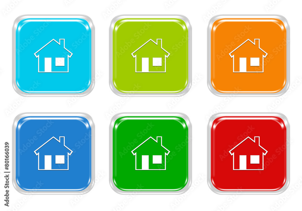 Wall mural set of squared colorful buttons with house symbol - Wall murals Wall mural set of squared colorful buttons with house symbol - Wall murals
