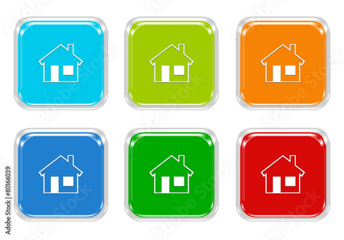 The watermark will not be included on Wall mural.: Set of squared colorful buttons with house symbol