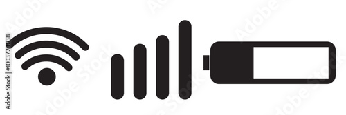 The watermark will not be included on Wall mural.: Set of status bar icon - mobile phone system icons - signal, wifi, and battery vector illustration on