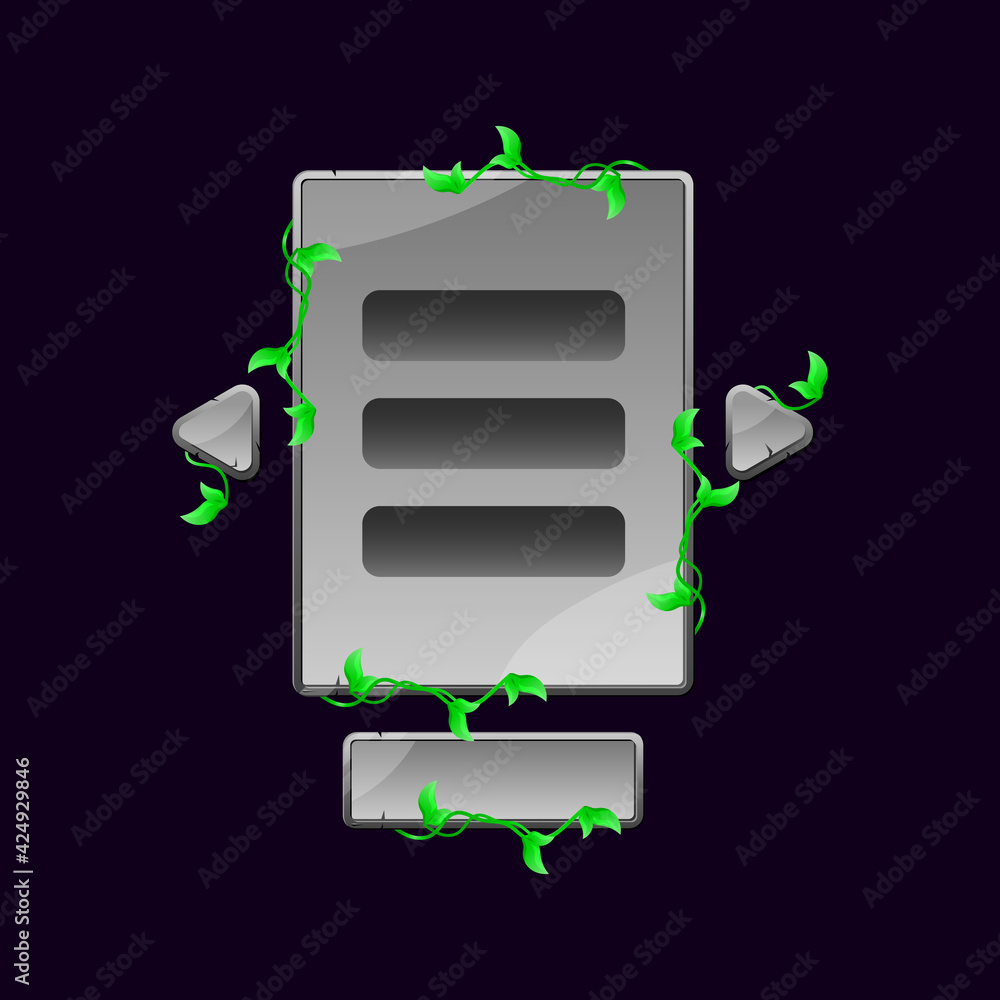 The watermark will not be included on Wall mural.: Set of stone leaves game ui board pop up for gui asset elements vector illustration