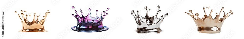 Wall mural set of stylized decorative crown-like objects in various colors. isolated on transparent background - Wall murals Wall mural set of stylized decorative crown-like objects in various colors. isolated on transparent background - Wall murals