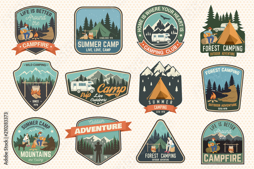 The watermark will not be included on Wall mural.: Set of summer camp badges - vector - concept for shirt or logo, print, stamp, patch or tee -