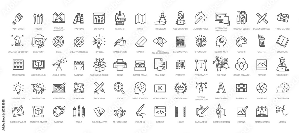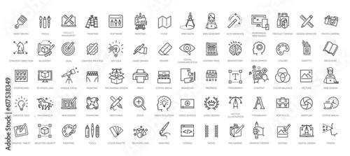 Wall mural : Set of thin line web icons of graphic design and project workflow