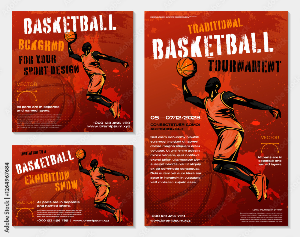 The watermark will not be included on Wall mural.: Set of three basketball background template with jumping player
