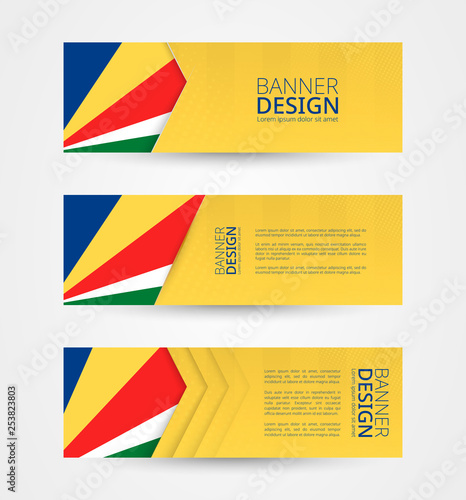Wall mural Set of three horizontal banners with flag of Seychelles. Web banner design template in color of Seychelles flag.