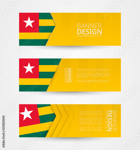 Wall mural set of three horizontal banners with flag of togo. web banner design template in color of togo flag.