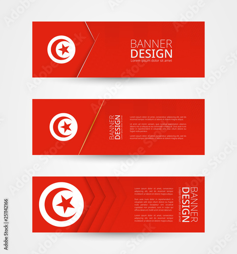 Wall mural set of three horizontal banners with flag of tunisia. web banner design template in color of tunisia