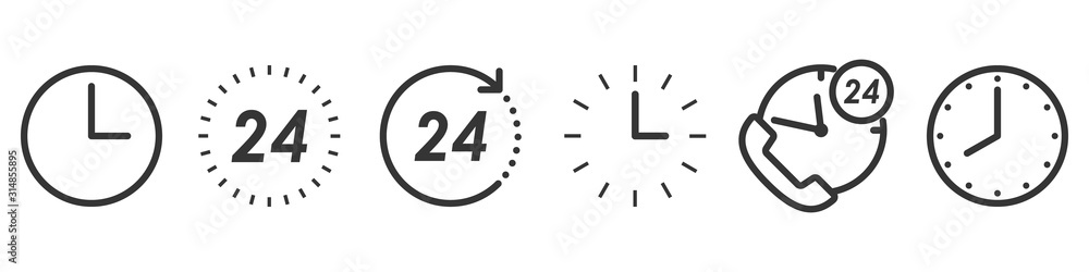 Wall mural set of time and clock icons in thin line style - Wall murals Wall mural set of time and clock icons in thin line style - Wall murals