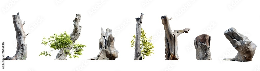 The watermark will not be included on Wall mural.: Set of tree stumps isolated on transparent background - 3d render -