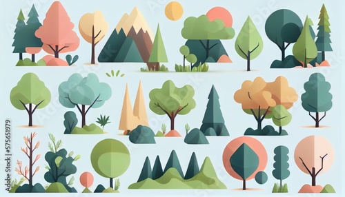 Wall mural set of trees and shrubs. collection of natural design elements trees with leaves. generative ai - Wall murals Wall mural set of trees and shrubs. collection of natural design elements trees with leaves. generative ai - Wall murals
