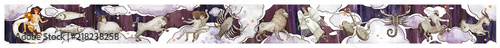 The watermark will not be included on Wall mural.: Set of twelve signs of the zodiac with main aquarius, watercolor in retro style in line design - isol