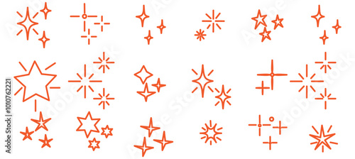 Wall mural : Set of twinkle stars - shiny twinkle sparks - seamless pattern with stars - yellow, orange sparkles sym