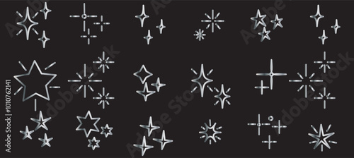 Wall mural : Set of twinkle stars - shiny twinkle sparks - seamless pattern with stars - yellow, orange sparkles sym