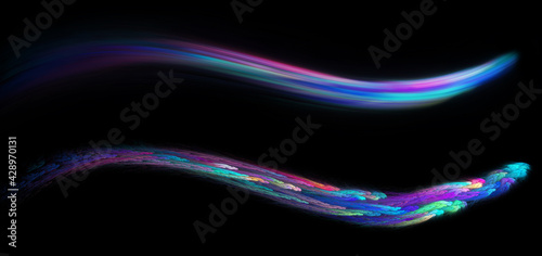 The watermark will not be included on Wall mural.: Set of two fractal and blured colorful wave - modern graphic element isolated on black background