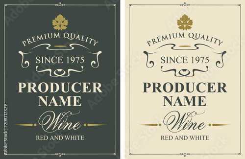 The watermark will not be included on Wall mural.: Set of two vector wine labels with vine leaves and calligraphic inscriptions in retro style