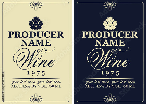 The watermark will not be included on Wall mural.: Set of two vector wine labels with vine leaves and calligraphic inscriptions in retro style