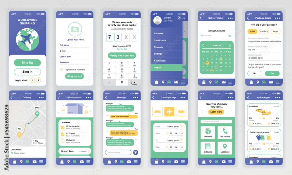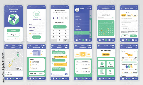 Wall mural : Set of ui, ux, gui screens delivery app flat design template for mobile apps, responsive website wir