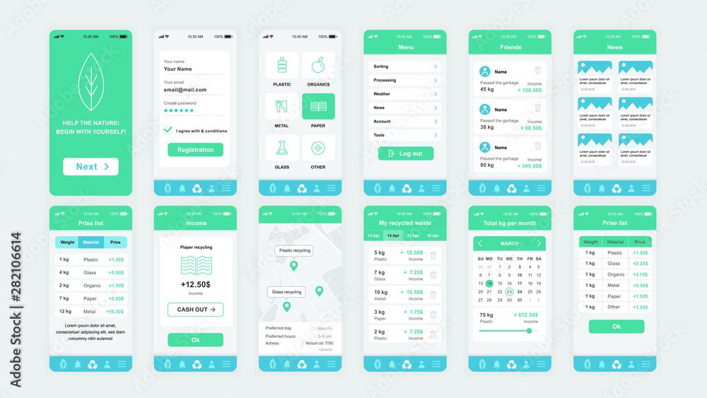 Wall mural set of ui, ux, gui screens ecology app flat design template for mobile apps, responsive website wire - Wall murals Wall mural set of ui, ux, gui screens ecology app flat design template for mobile apps, responsive website wire - Wall murals