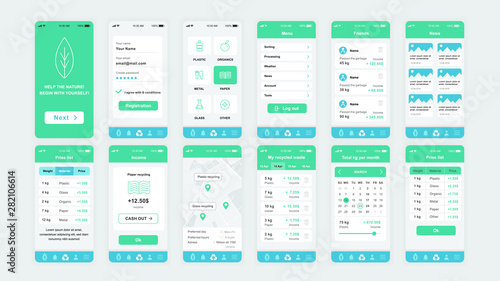 Wall mural set of ui, ux, gui screens ecology app flat design template for mobile apps, responsive website wire