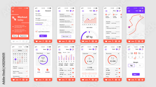 Wall mural set of ui, ux, gui screens fitness app flat design template for mobile apps, responsive website wire - Wall murals Wall mural set of ui, ux, gui screens fitness app flat design template for mobile apps, responsive website wire - Wall murals