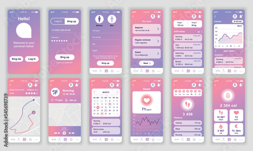 Wall mural set of ui, ux, gui screens fitness app flat design template for mobile apps, responsive website wire - Wall murals Wall mural set of ui, ux, gui screens fitness app flat design template for mobile apps, responsive website wire - Wall murals
