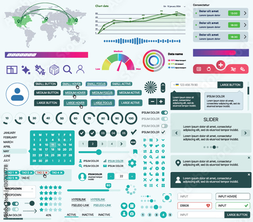 The watermark will not be included on Wall mural.: Set of ui/ux elements for websites and mobile applications: buttons, forms, menus, panels, icons, lo