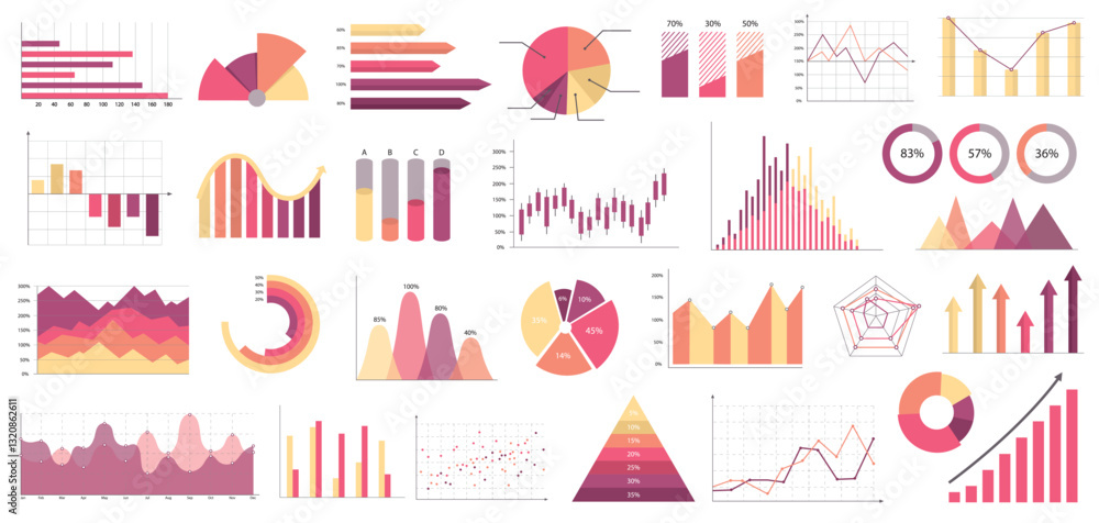 The watermark will not be included on Wall mural.: Set of various colorful business charts and graphs in modern flat design on a white background - conc