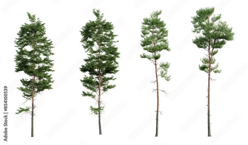 The watermark will not be included on Wall mural.: Set of various pine trees isolated on transparent background - 3d render -